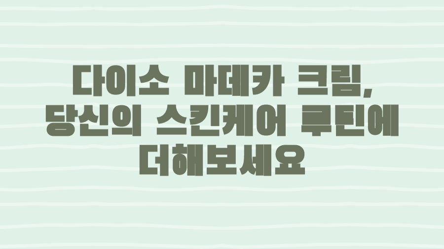 20대 후반에서 30대 초반의 합리적인 소비를 지향하는 여러분을 위해, 오늘은 SNS와 온라인 커뮤니티에서 입소문을 타고 있는 '다이소 마데카 크림'에 대한 모든 것을 파헤쳐 보겠습니다.