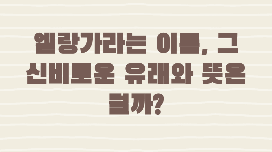 독특하고 이국적인 이름, '엘랑가'에 대해 들어보셨나요? 마치 신비로운 동화 속에서 튀어나온 듯한 이름은 우리에게 새로운 영감을 주기도 하는데요. '엘랑가'라는 이름이 가진 특별한 매력은 무엇인지, 그리고 어디에서 유래된 이름인지 궁금하지 않으신가요? 이 글에서는 '엘랑가'라는 이름의 뜻과 유래, 그리고 이 이름을 가진 인물이나 문화적 맥락에 대해 함께 알아보며, 그 숨겨진 이야기를 파헤쳐 보겠습니다. 여러분의 호기심을 자극할 '엘랑가'의 모든 것을 지금부터 공개합니다.엘랑가, 그 이름의 숨겨진 뜻은 무엇일까요?'엘랑가(Elanga)'라는 이름은 왠지 모르게 낯설면서도 매력적인 울림을 가지고 있습니다. 마치 먼 나라의 옛이야기나 아름다운 노래의 한 구절에서 들려오는 듯한 이 이름은, 그 자체로 독특한 분..