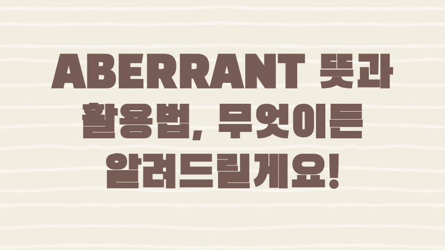 '정상'이라는 이름표를 달지 못한 특별함, 혹은 예외에 대해 생각해 보신 적 있으신가요?때로는 틀에 박힌 규칙에서 벗어난 것이 오히려 새로운 가능성을 열기도 하고, 또 어떤 경우에는 예상치 못한 결과를 초래하기도 합니다.오늘 우리는 'ABERRANT'라는 단어를 통해 이러한 '벗어남'의 의미와 그 다채로운 활용 가능성을 깊이 탐구해 보고자 합니다.이 단어의 정확한 뜻부터 시작하여, 실제 문장 속에서의 쓰임새, 그리고 특정 분야에서 어떻게 적용되는지까지, ABERRANT의 모든 것을 속 시원하게 파헤쳐 보겠습니다.ABERRANT, 그 뜻을 파헤치다ABERRANT라는 단어를 처음 접했을 때, 우리는 종종 그 의미를 명확하게 파악하는 데 어려움을 겪곤 합니다.사전적으로 ABERRANT는 '일탈한', '정도에서..